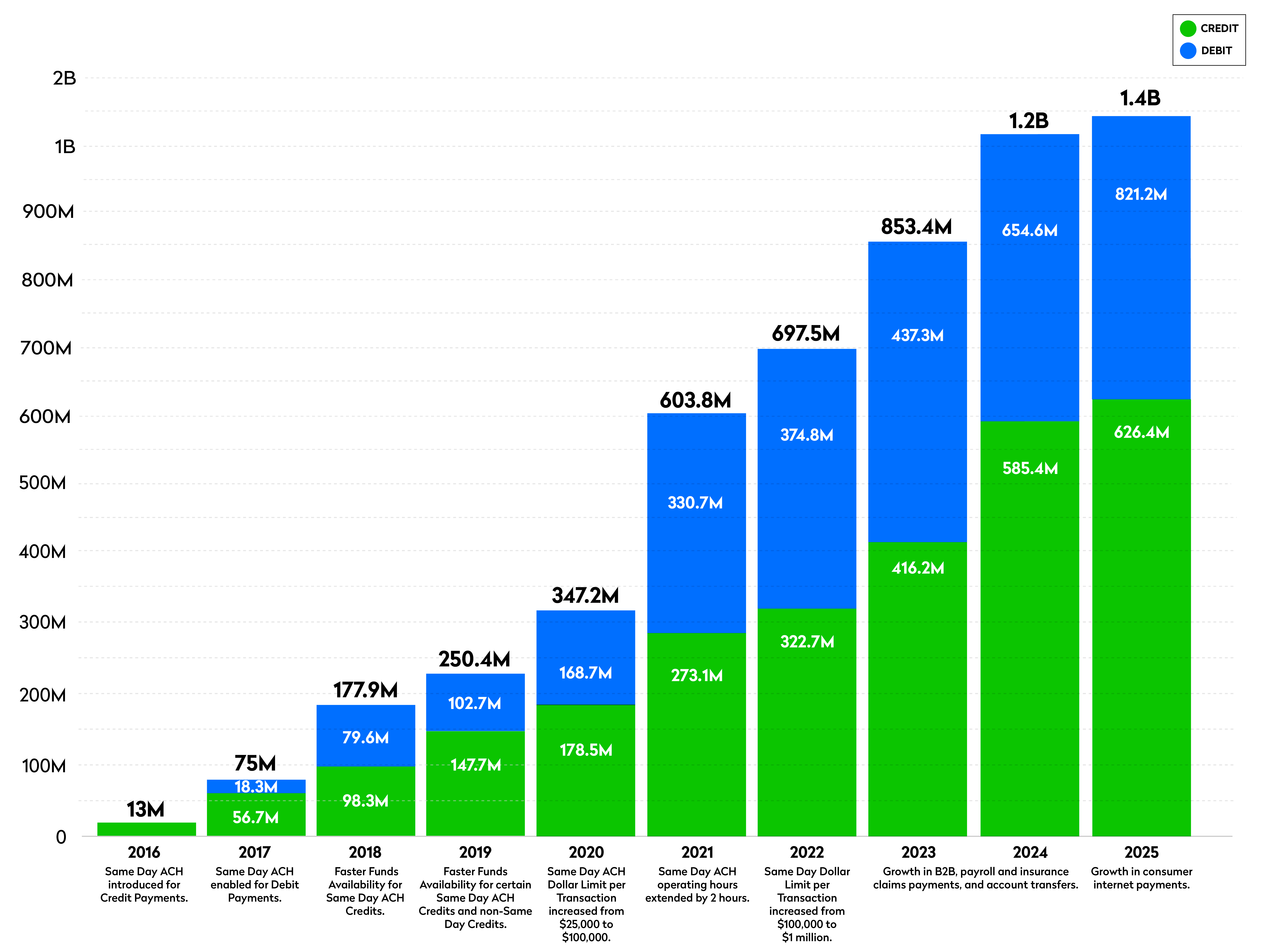 Since its launch, Nacha and ACH Network stakeholders have continued to provide Same Day ACH enhancements, which have been key to its growth.